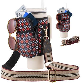 Portavasos con correa para vaso Stanley de 40 oz, bolsa de transporte para botella de agua con bolsillo para teléfono, correa de lona, accesorios para Copa Stanley