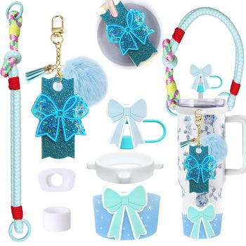 Juego de accesorios de lazo femenino para Stanley Cup 20oz30oz40oz paja Topper llavero encantos correa de mango, vaso de lazo de bota de silicona