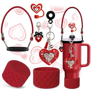 Para San Valentín Stanley Cup Accesorios 30 Oz 40 Oz Love Heart Straw Covers Botella de agua Correa con asa Cute Heart Stanley Charms